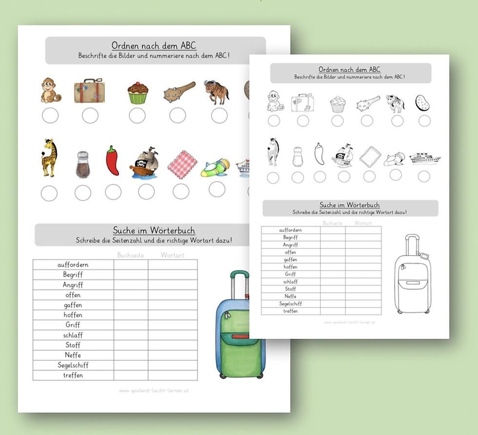Wörterbuch, Diverse Kopiervorlagen (zur Einführung & Festigung)